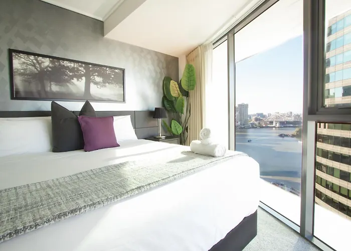 Appartement Luxury Cbd 2B2B Balcony Views Free Parking à Brisbane de 65 m² est situé dans le voisinage de "Gare de Termini" à Brisbane, à moins de 5 minutes de marche de la jetée d'Eagle Street.